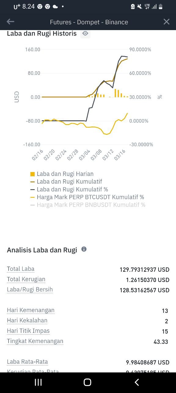 Dari ujicoba yang berjalan per hari bisa mencetak profit 0.5% - 15%. Anda bisa mengeceknya sendiri di laporan laba kami di halaman laporan laba kami atau di grup telegram kami link ada di bawah.