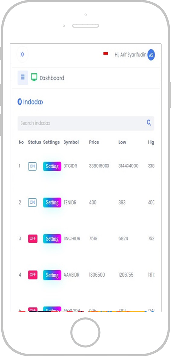 Choose a coin, on indodax & binance, or any coin you want to automate your trading just need a few clicks to complete and enjoy